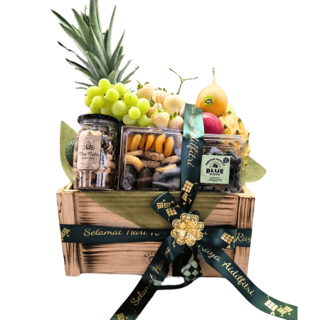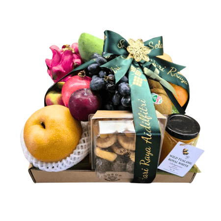 - Premier @ Rm200 : Cut Fruits + Assorted Dried Fruits + Tualang Honey + Mix Roast Nuts + 3x Cold Pressed Juice