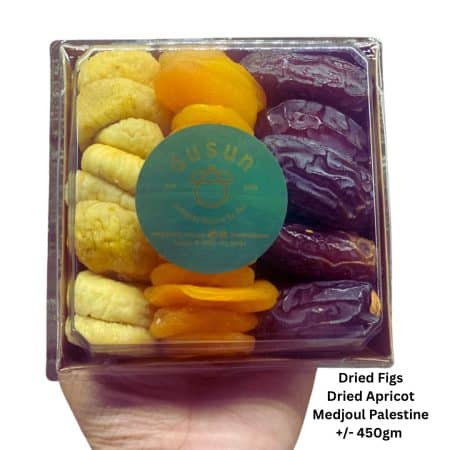 - Tall @ Rm150 : Cut Fruits + Assorted Dried Fruits + Tualang Honey + Mix Roast Nuts
