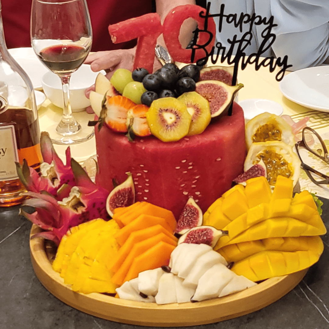 Grand Birthday Watermelon Cake comes with a nice Wooden Round Tray!