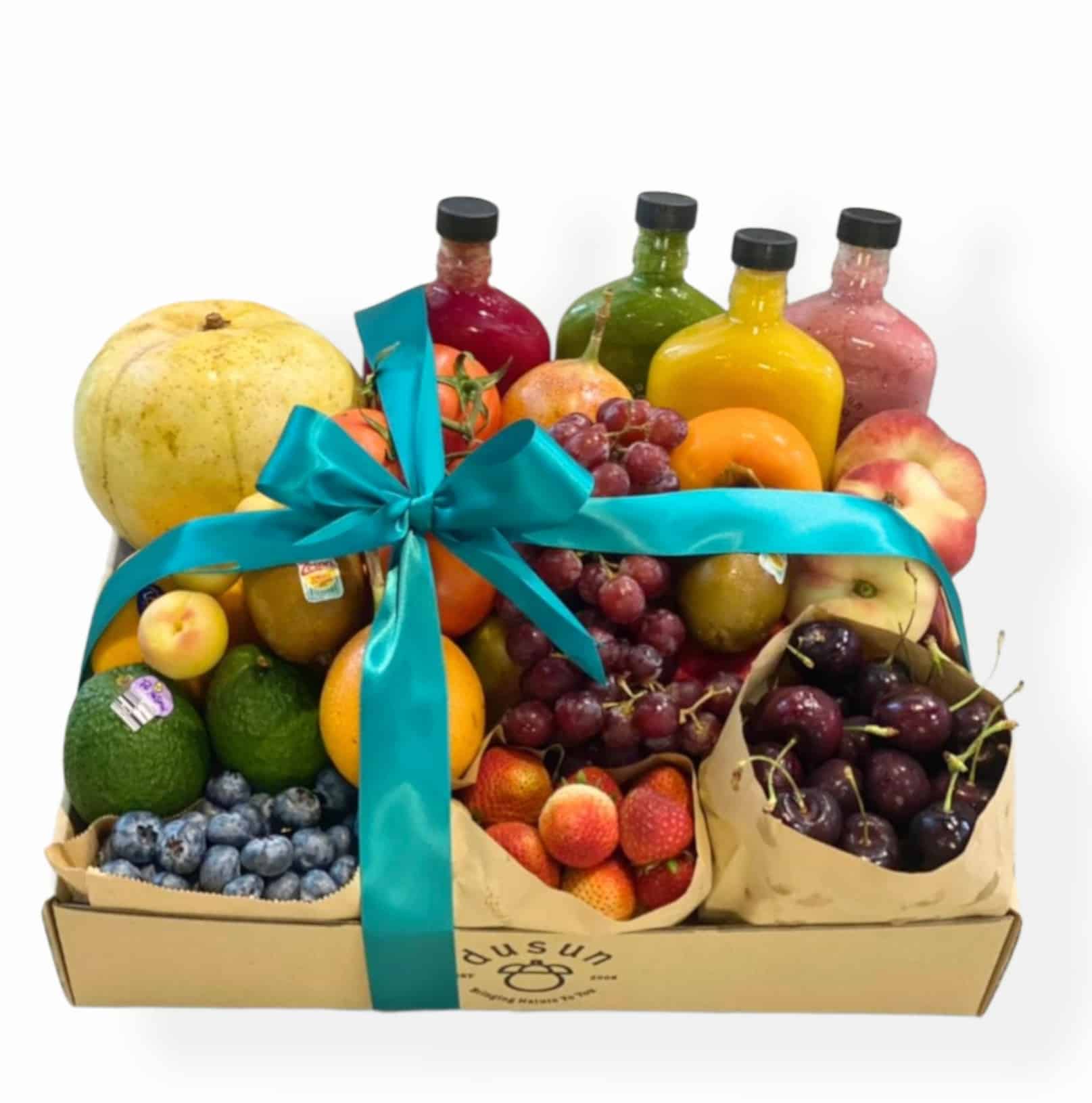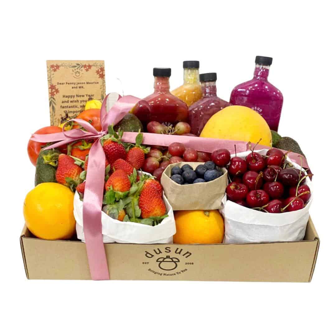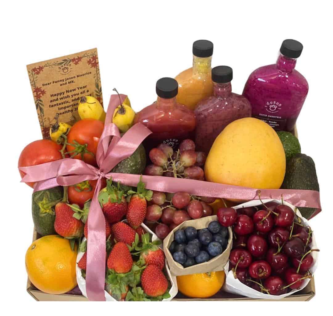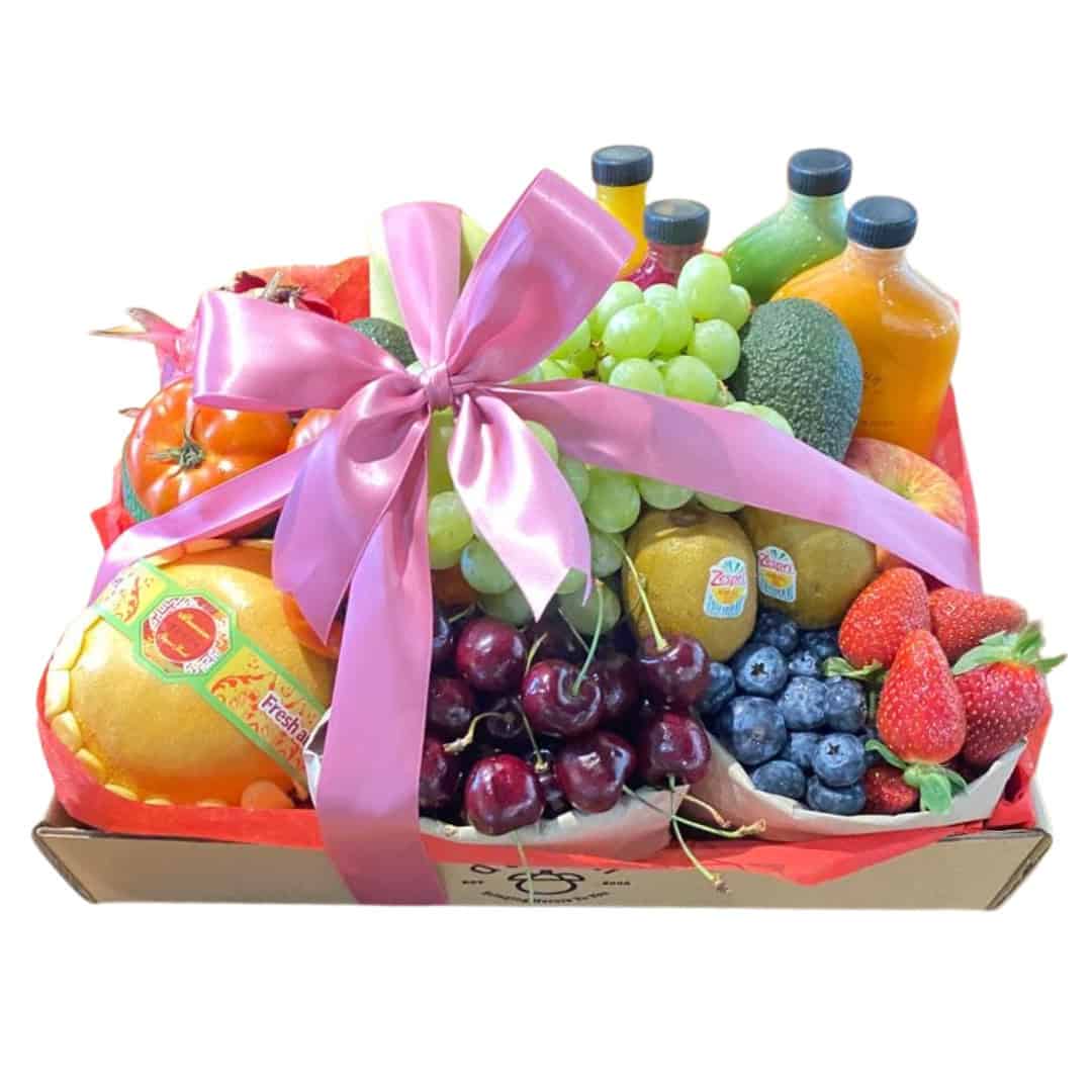 This Zero Waste Gift Box comes with seasonal Cherries, Strawberries & Blueberries.