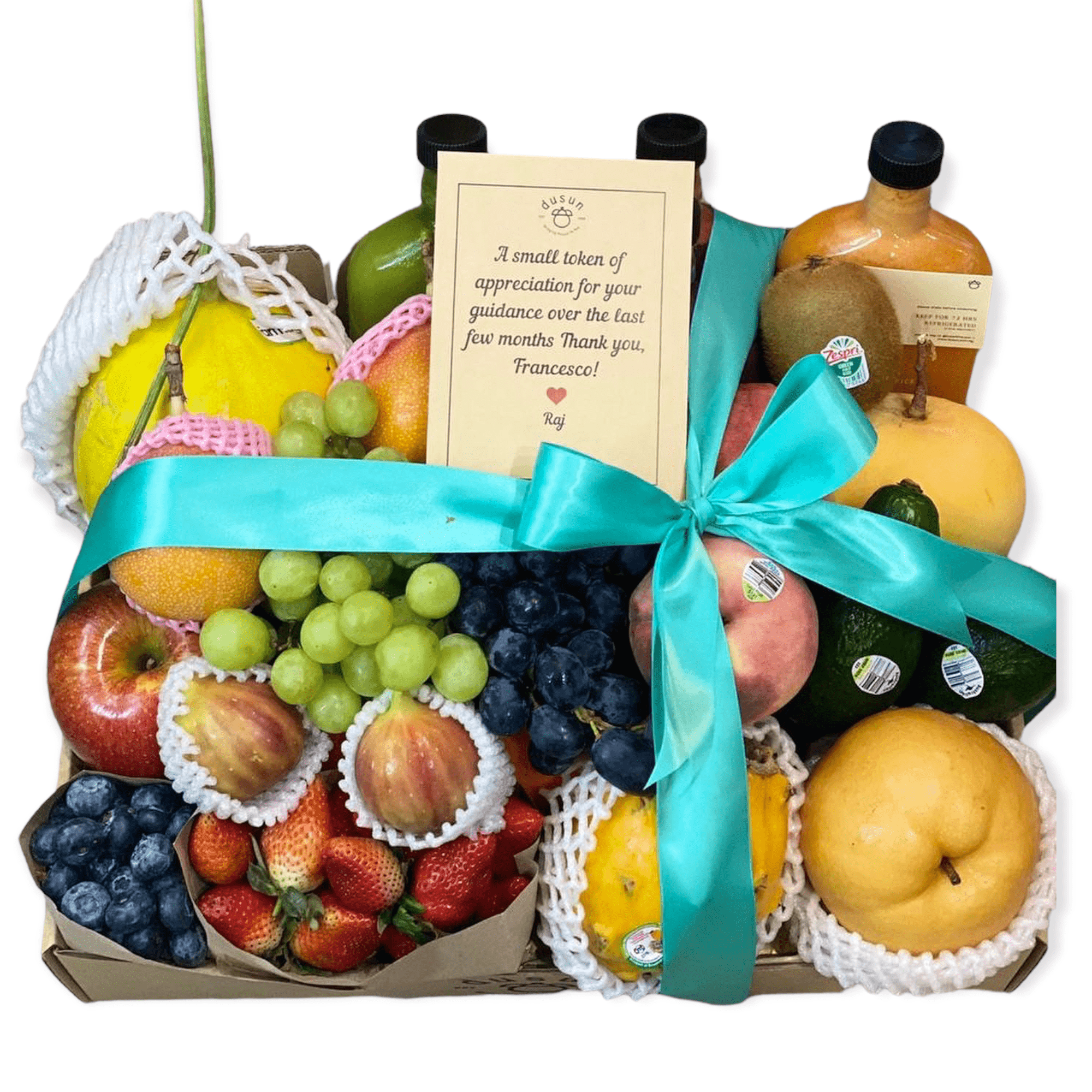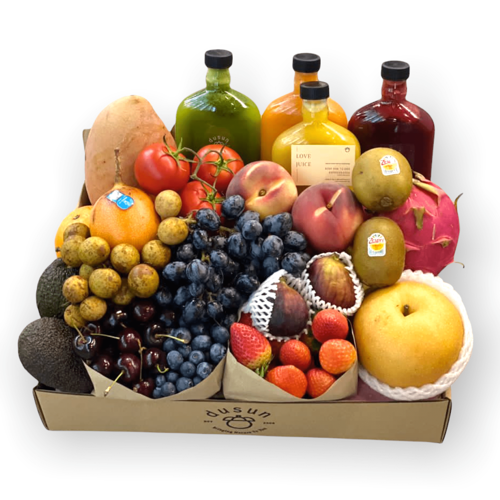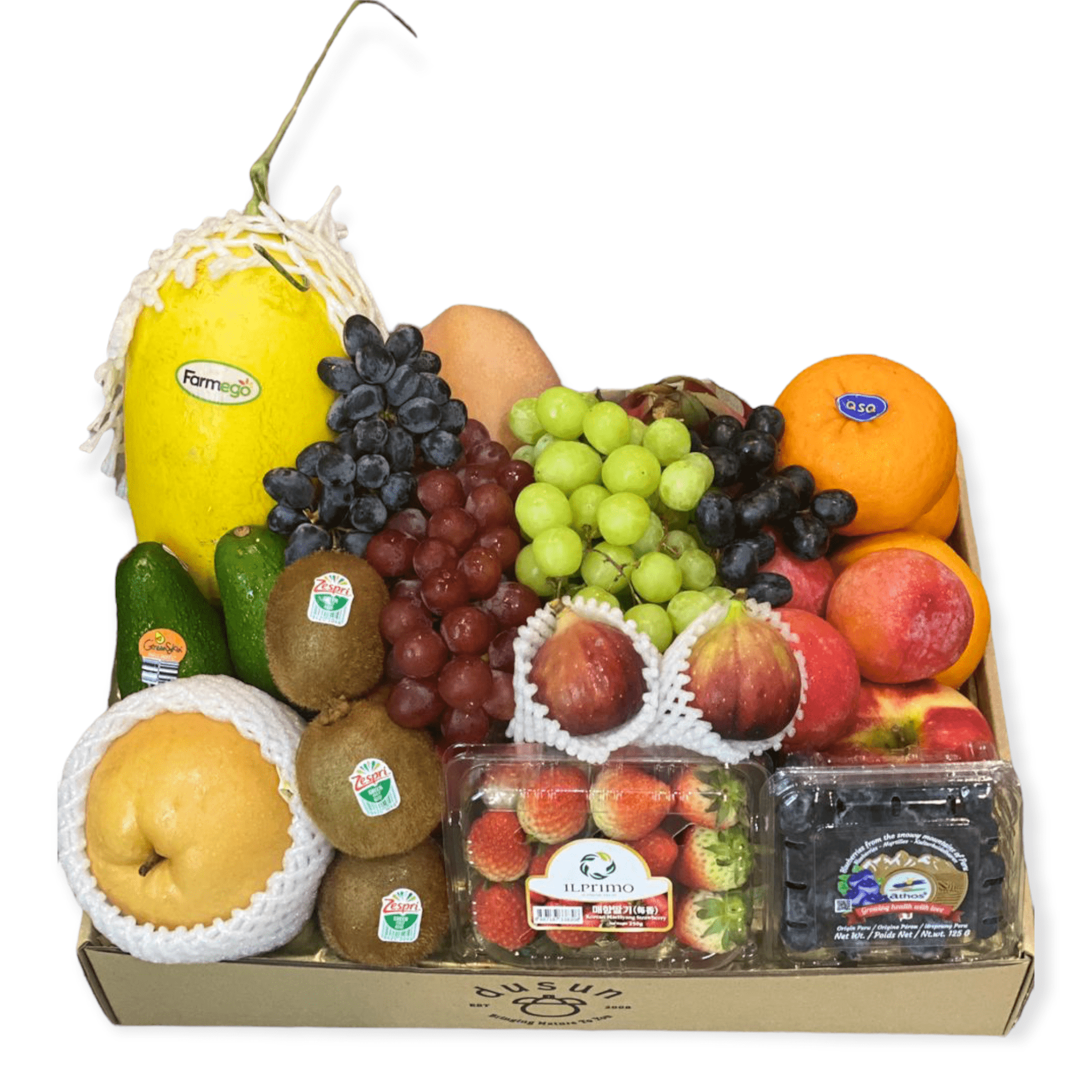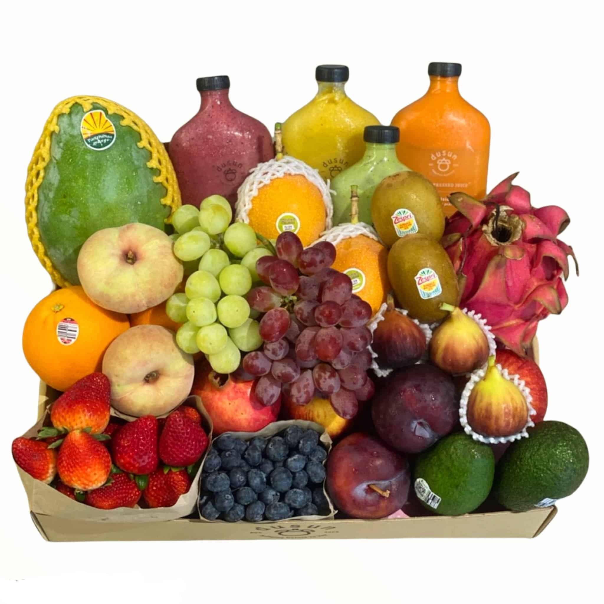 This Zero Waste Gift Box comes with seasonal Cherries, Strawberries & Blueberries.