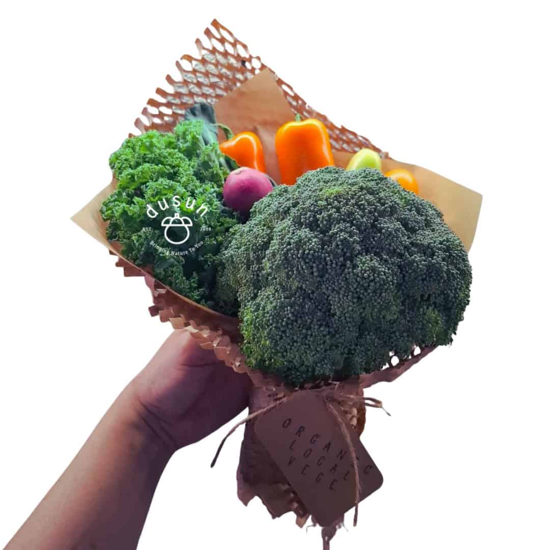 Kasih Vege Vibes Bouquet wrapped with fresh local organic vegetables. We do our best to support Local & Organic Farmers 💪