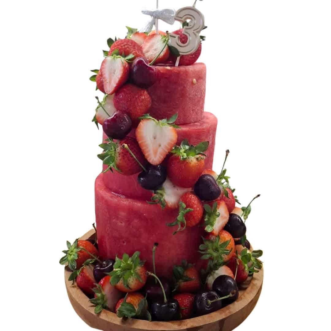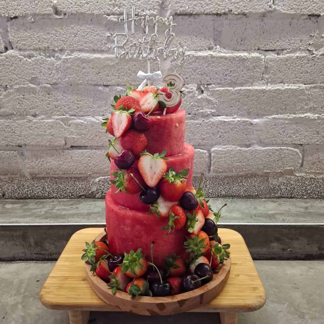 Melt Your Heart Watermelon Cake (3 Tier) comes with a Wooden Round Tray.