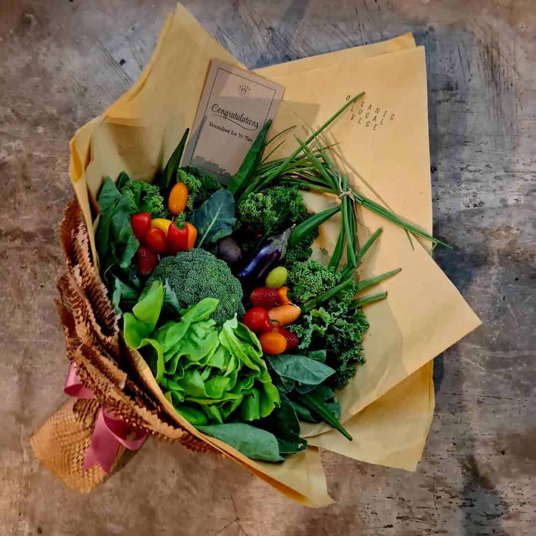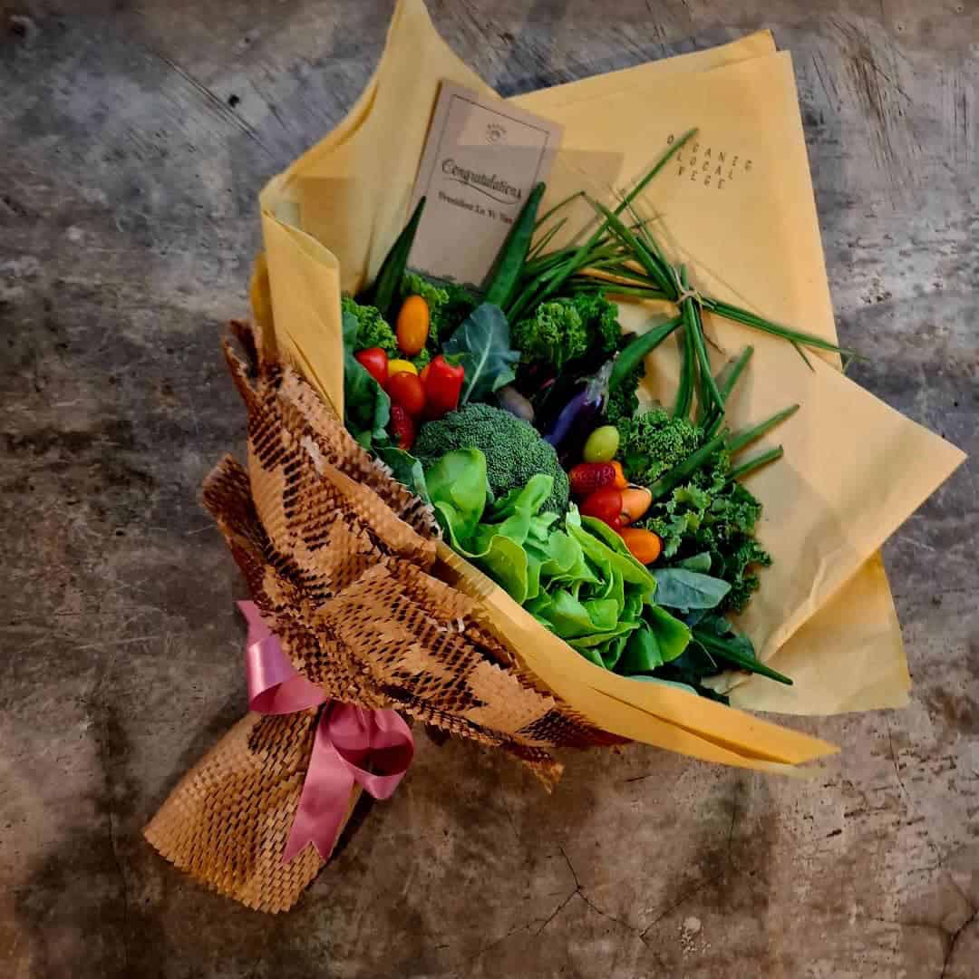 Micra Vege Vibes Bouquet is wrapped with fresh local organic vegetables. We do our best to support Local & Organic Farmers 💪