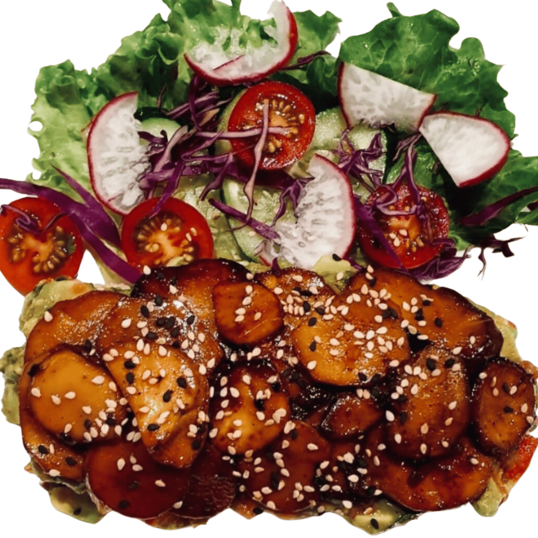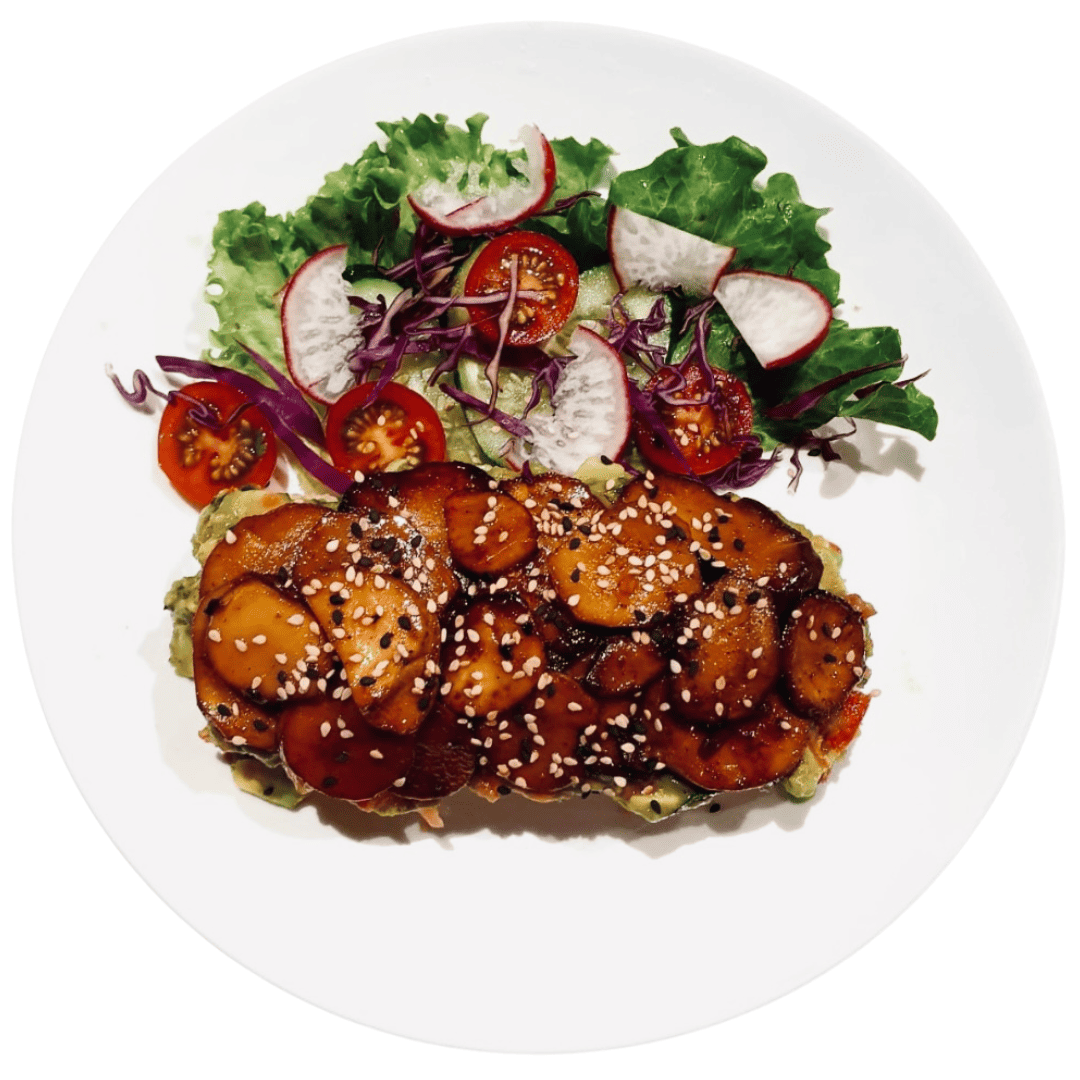 Toast Sourdough with Avocado Spread & Grilled Button /Shiitake/Eryngii (King Trumpet) mushroom in season *Vegan*